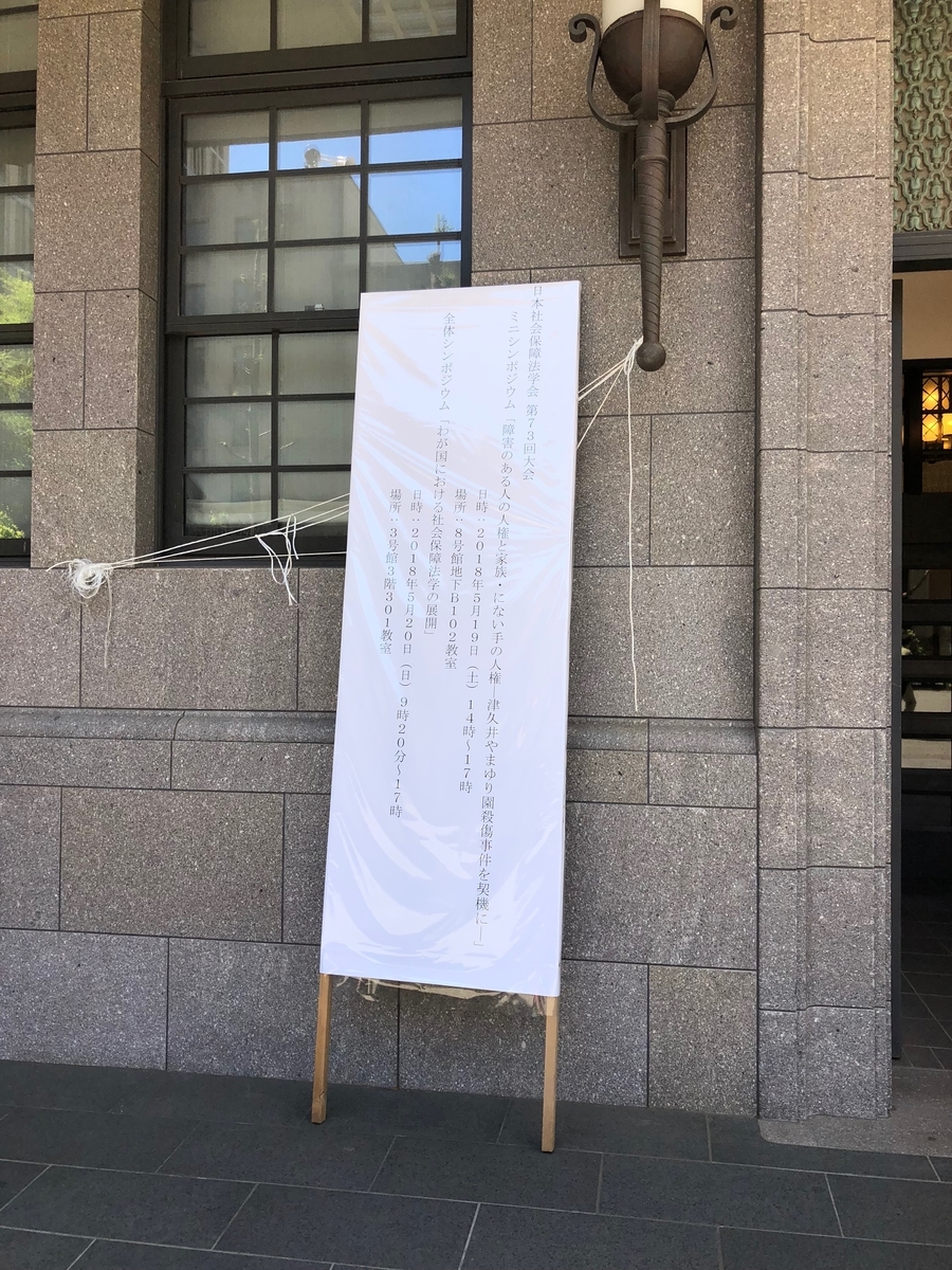 2018-05-23 日本社会保障法学会第73回大会 04 行政事件 04-01 社会保障法 07 日々の出来事 日本社会保障法学会第73回@早稲田大学に参加してきました。 2018年5月19日(土)ミニシンポジウム 「障害のある人の人権と家族・にない手の人権-津久井やまゆり園殺傷事件を契機に-」 2018年5月20日(日)全体シンポジウム 「わが国における社会保障法学の展開」